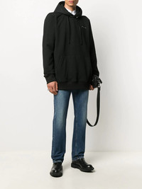 oversized logo print hoodie black cotton logo print at the chest classic hood long sleeves front pouch pocket ribbed cuffs ribbed hem Made in Italy Composition Cotton 100% SIZE & FIT Model measurements Height 6 ft 1 in(1.85 m) Bust/Chest 35.82 in(91 cm) Hips 37.79 in(96 cm) Waist 29.13 in(74 cm) FittingInformation This piece fits true to size. We recommend you get your regular size Cut for a loose fit Made with a mid-weight fabric Washing instructions Machine Wash