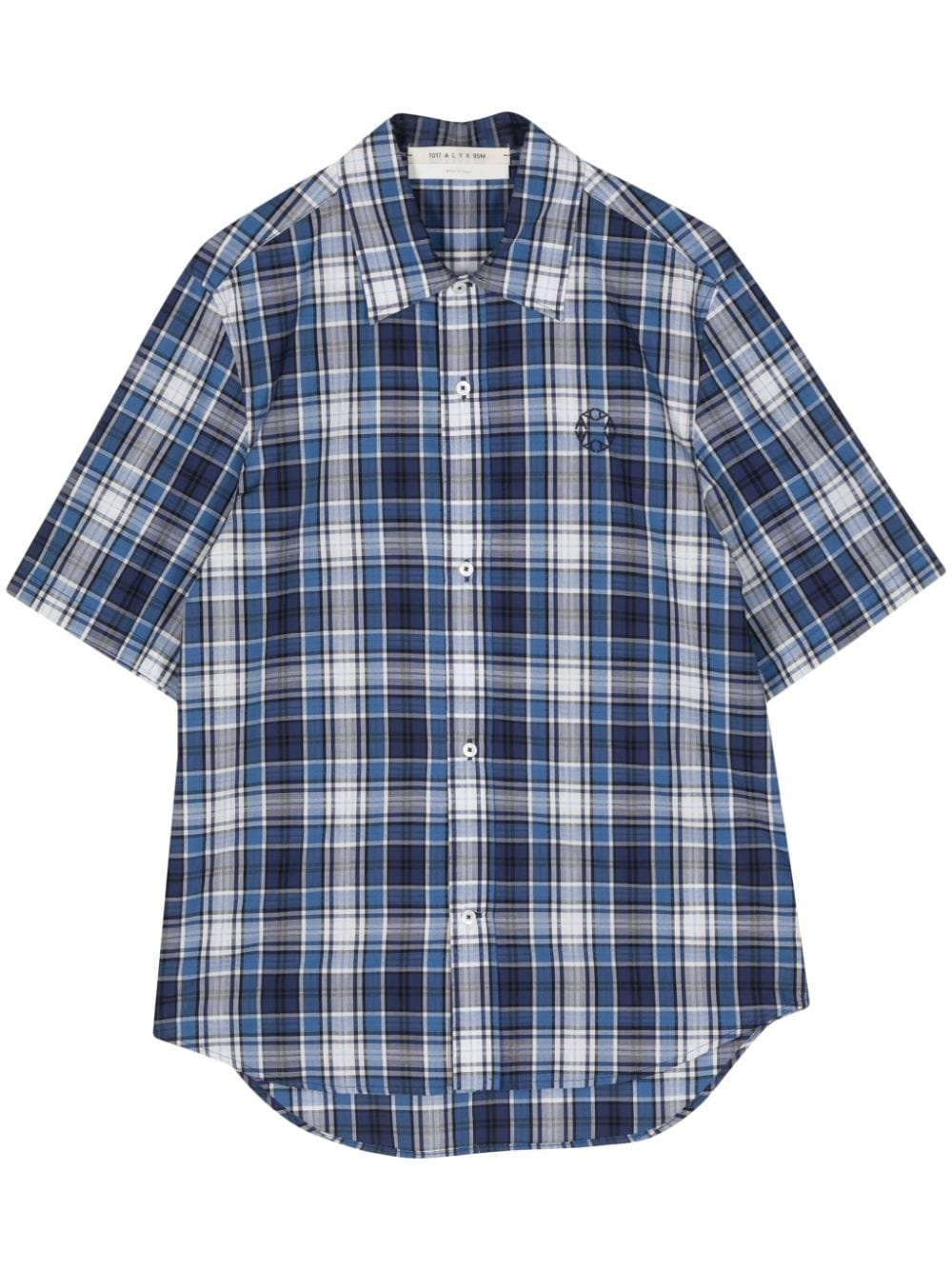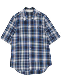 plaid cotton shirt Highlights - Ocean blue/multicolour - Cotton - Plaid check pattern - Embroidered logo at the chest - Spread collar - Front button fastening - Short sleeves - High-low hem Made in Italy Composition Cotton 100%
