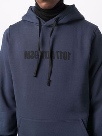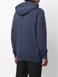 reverse logo-print rib-trimmed hoodie navy blue/black cotton-blend drawstring hood long sleeves ribbed cuffs front pouch pocket ribbed hem Imported Composition Cotton 80%, Polyester 20% SIZE & FIT Model measurements Height 6 ft 1 in(1.85 m) Bust/Chest 38.58 in(98 cm) Hips 37 in(94 cm) Waist 30.31 in(77 cm) FittingInformation This piece fits true to size. We recommend you get your regular size Cut for a relaxed fit Made with a mid-weight fabric Washing instructions Machine Wash