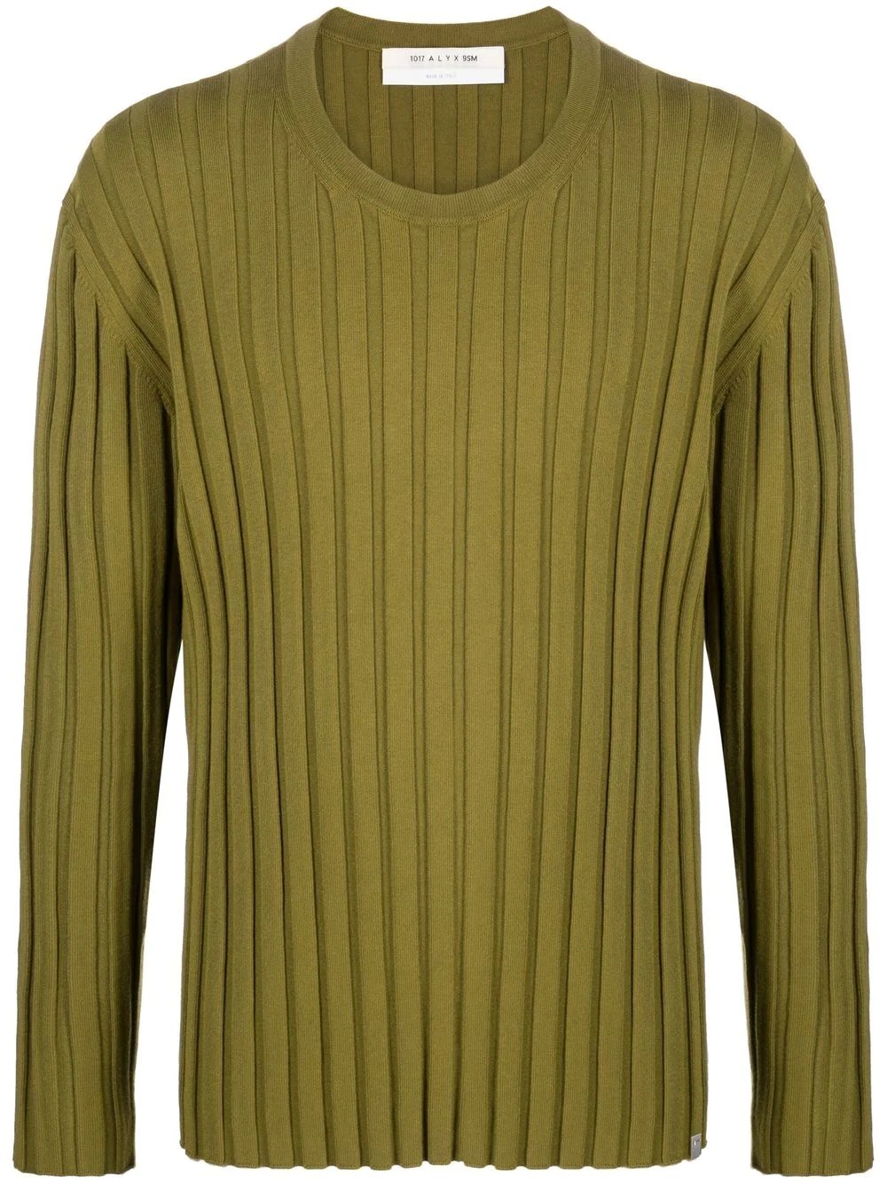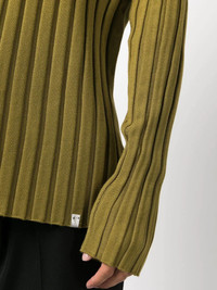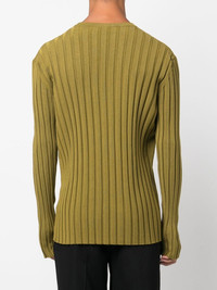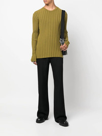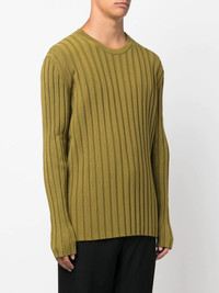 ribbed-knit jumper military green ribbed knit logo patch to the side crew neck long sleeves straight hem Made in Italy Composition Viscose 89%, Polyamide 8%, Elastane 3% SIZE & FIT Model measurements Height 6 ft 1 in(1.86 m) Bust/Chest 36.61 in(93 cm) Hips 37 in(94 cm) Waist 28.74 in(73 cm) FittingInformation This piece fits true to size. We recommend you get your regular size Cut for a close fit Made with a mid-weight stretch fabric Washing instructions Hand Wash
