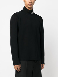 roll-neck long-sleeve jumper jet black silver-tone hardware fine knit roll neck long sleeves straight hem Made in Italy Composition Viscose 89%, Polyamide 8%, Elastane 3% SIZE & FIT Model measurements Height 6 ft 2 in(1.87 m) Bust/Chest 38.18 in(97 cm) Hips 36.61 in(93 cm) Waist 29.13 in(74 cm) Measurement SLEEVE LENGTH 24.01 in(61 cm) LENGTH 24.01 in(61 cm) Shoulder Width 13.77 in(35 cm) FittingInformation This piece fits true to size. We recommend you get your regular size Cut for a relaxed fit Made with a mid-weight fabric Washing instructions Hand Wash