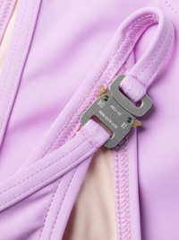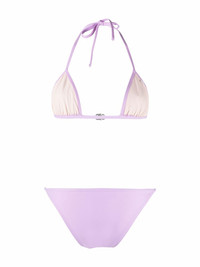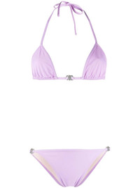 rollercoaster-buckle bikini set lilac stretch-design rollercoaster buckle detail triangle cup halterneck classic bottoms Be mindful to try on swimwear over your own garments. Made in Italy Composition Outer: Polyamide 78%, Elastane 22% Lining: Polyamide 73%, Elastane 27% Washing instructions Machine Wash