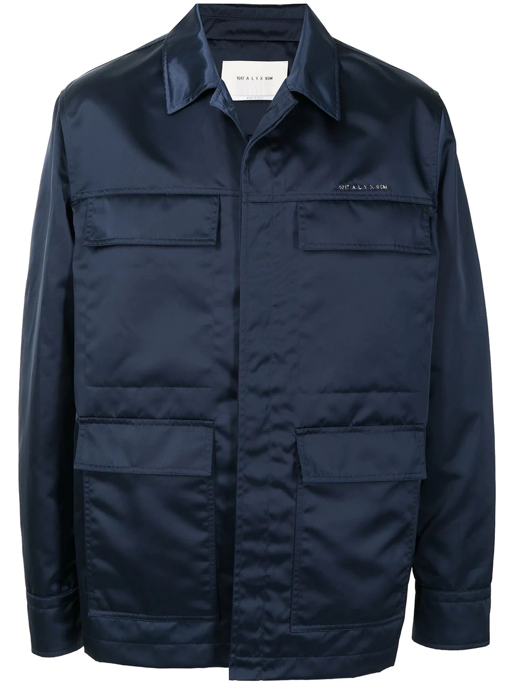 satin-finish jacket midnight blue cotton satin finish buttoned cuffs classic collar concealed front fastening long sleeves front flap pockets Made in Italy Composition Outer: Polyamide 100% Lining: Cotton 100% SIZE & FIT Model measurements Height 6 ft 0 in(1.84 m) Bust/Chest 35.43 in(90 cm) Hips 35.82 in(91 cm) Waist 28.74 in(73 cm) FittingInformation This piece fits true to size. We recommend you get your regular size Cut for a loose fit Made with a mid-weight non-stretch fabric Washing instructions Hand Wash