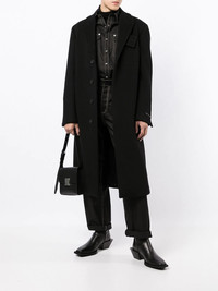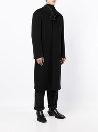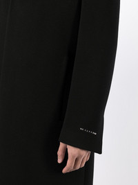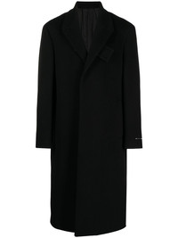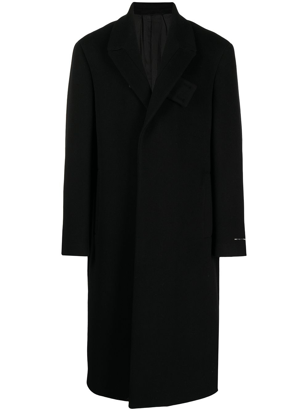 single-breasted midi coat black wool-blend silver-tone logo plaque peak lapels concealed front fastening long sleeves straight hem mid-length Made in Italy Composition Wool 80%, Polyamide 20% SIZE & FIT Model measurements Height 6 ft 0 in(1.83 m) Bust/Chest 37.79 in(96 cm) Hips 37 in(94 cm) Waist 30.31 in(77 cm) FittingInformation This piece fits true to size. We recommend you get your regular size Cut for a loose fit Made with a heavyweight non-stretch fabric Washing instructions Dry Clean Only