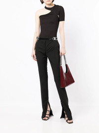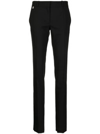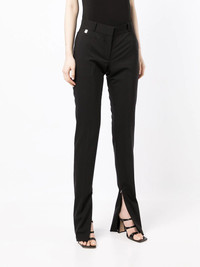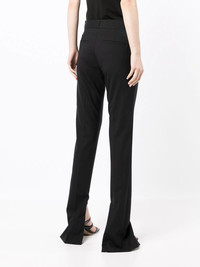 slim-fit reveal-leg trousers black virgin wool blend mid-rise belt loops concealed front fastening slim cut side slits Made in Italy Composition Virgin Wool 54%, Polyester 45%, Elastane 1% SIZE & FIT Model measurements Height 5 ft 10 in(1.79 m) Bust/Chest 31.49 in(80 cm) Hips 35.03 in(89 cm) Waist 24.01 in(61 cm) FittingInformation This piece fits true to size. We recommend you get your regular size Designed to be fitted at the waist and through the thigh, loose from the knee Made with a mid-weight fabric Washing instructions Dry Clean Only