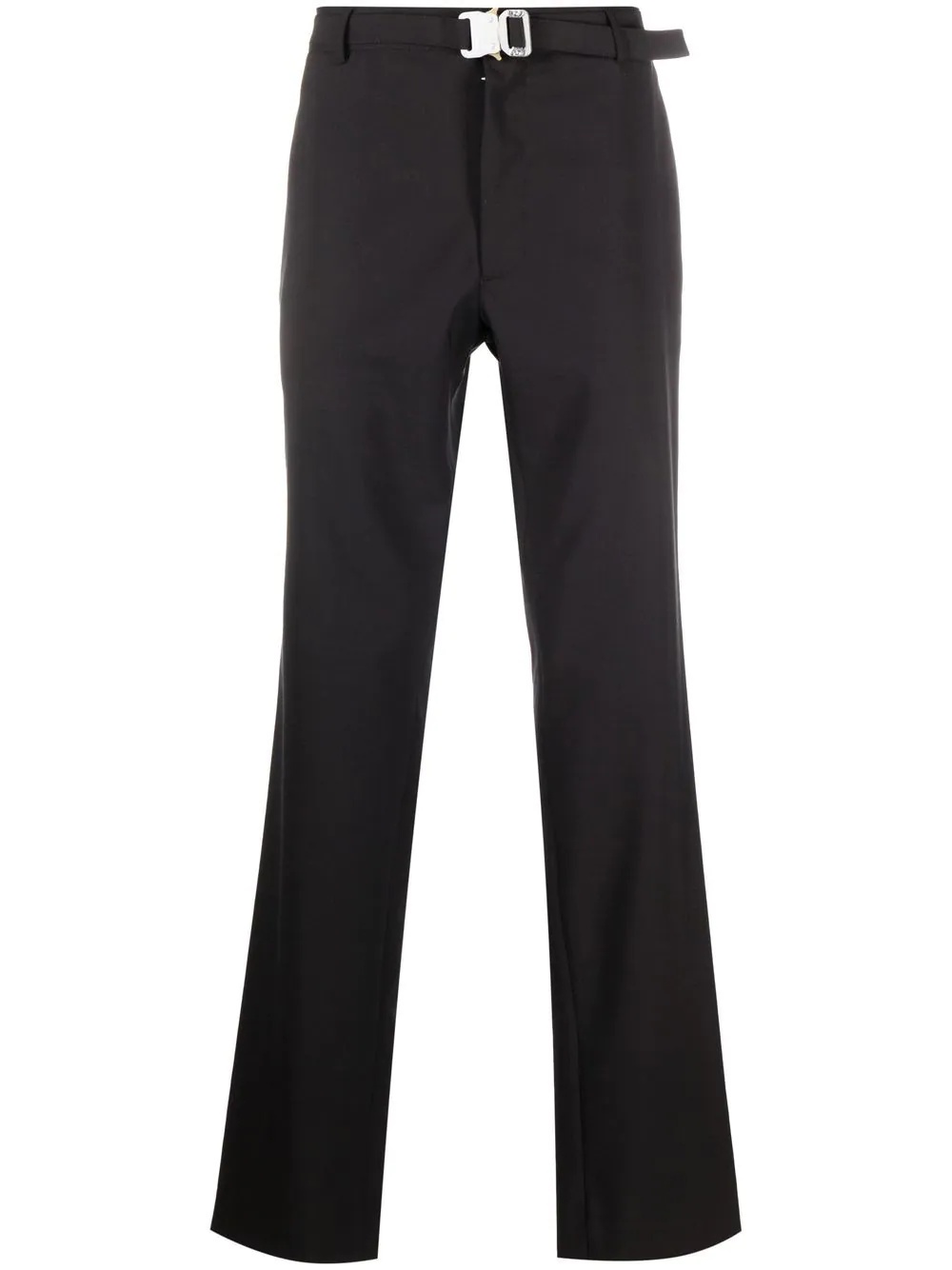 straight-leg belted trousers A classic straight leg and tonal black colourway create a minimalist feel for these trousers from 1017 ALYX 9SM. This refined finish allows the silver-tone belt detail to stand out, adding a contemporary touch. Made in Italy Composition Outer: Virgin Wool 54%, Polyester 45%, Elastane 1% Lining: Cotton 100% SIZE & FIT Model measurements Height 6 ft 3 in(1.9 m) Bust/Chest 38.18 in(97 cm) Hips 37.4 in(95 cm) Waist 27.55 in(70 cm) FittingInformation This piece fits true to size. We recommend you get your regular size Cut for a slim fit Made with a mid-weight stretch fabric Washing instructions Dry Clean Only