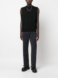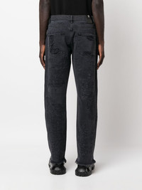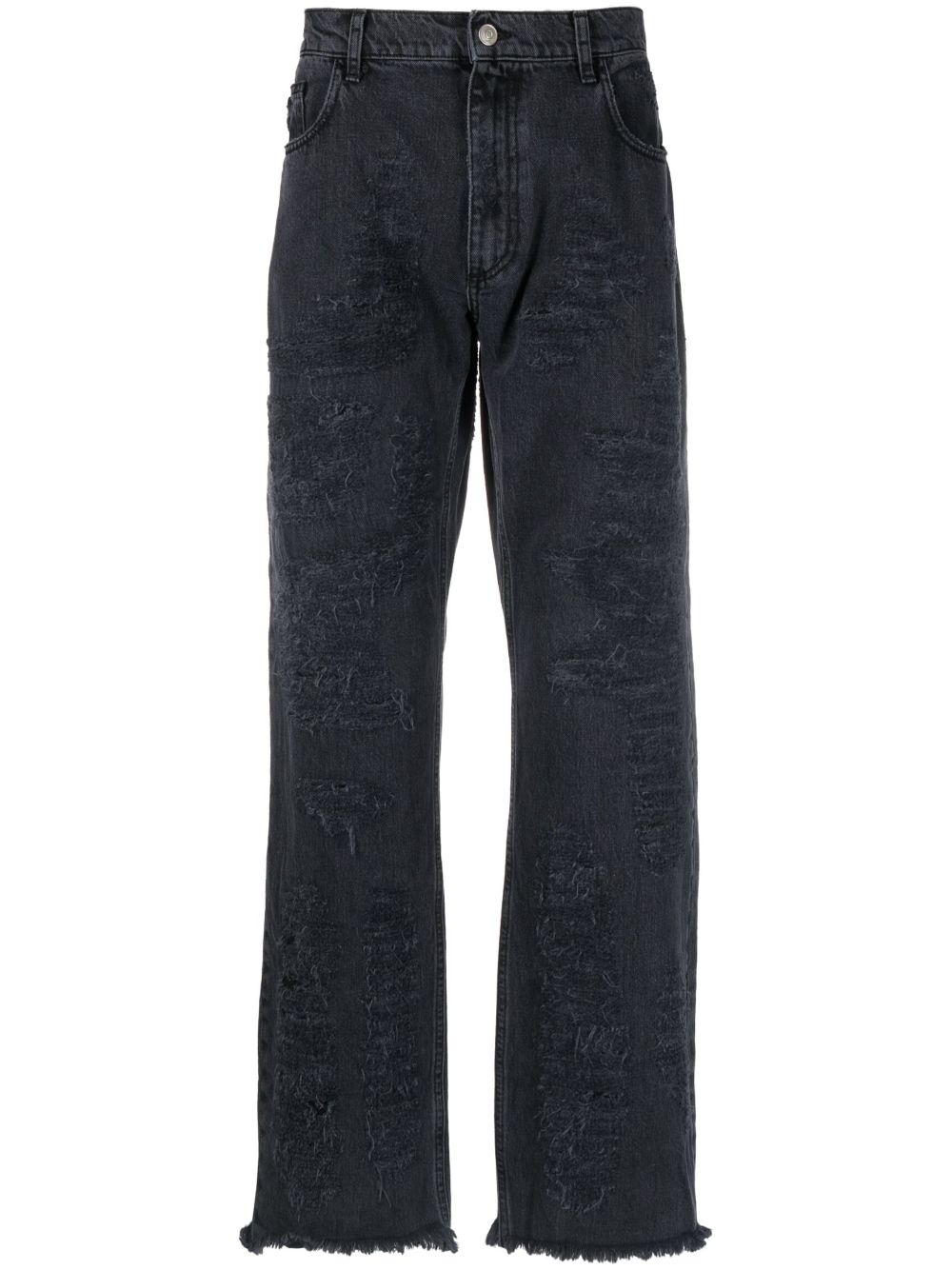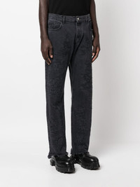 straight-leg distressed-finish jeans Highlights - Black - Cotton - Washed denim - Distressed finish - Logo patch to the rear - Belt loops - Button fly fastening - Straight leg - Two rounded pockets to the sides - Two rear patch pockets - Frayed hem Made in Italy Composition Outer: Cotton 100% Lining: Polyester 65%, Cotton 35% SIZE & FIT Model measurements Height 6 ft 2 in(1.87 m) Bust/Chest 36.41 in(92.5 cm) Hips 37 in(94 cm) Waist 29.52 in(75 cm) FittingInformation Designed for a relaxed straight leg, allowing a comfortable and loose fit over the leg Made from a midweight non-stretch fabric This piece fits true to size – take your usual size
