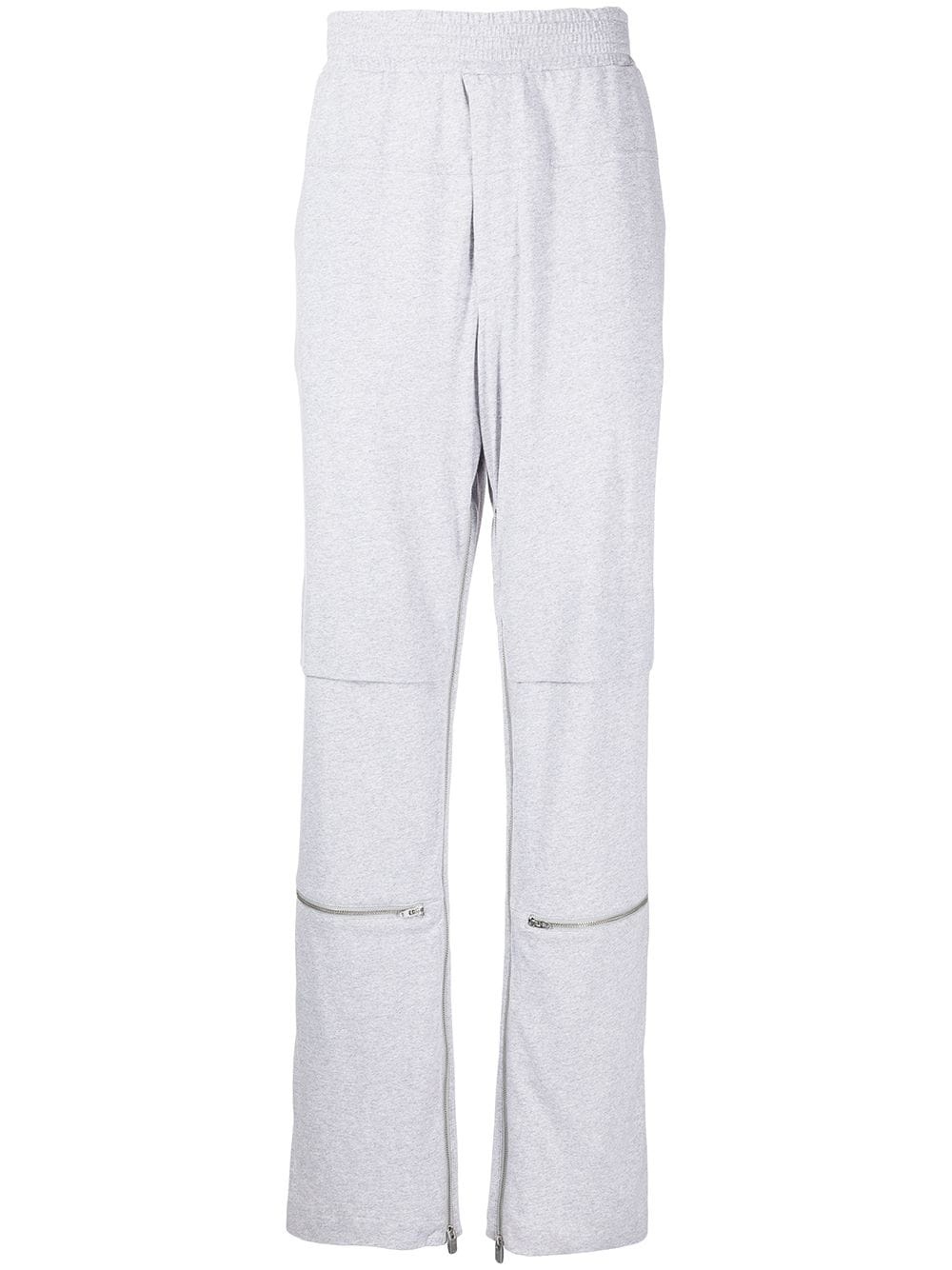 straight-leg track pants grey cotton elasticated waistband two side slit pockets two rear welt pockets zip details straight leg Made in Italy Composition Body: Cotton 100% SIZE & FIT Model measurements Height 6 ft 2 in(1.87 m) Bust/Chest 34.25 in(87 cm) Hips 36.22 in(92 cm) Waist 29.52 in(75 cm) FittingInformation This piece fits true to size. We recommend you get your regular size Designed for a slim fit at the waist and loose over the leg Made with a mid-weight fabric Washing instructions Machine Wash