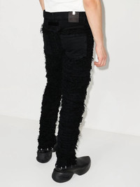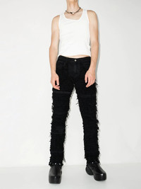 x Blackmeans distressed straight-leg jeans Matthew Williams, the mastermind behind 1017 Alyx 9SM's designs, collaborates with punk-inspired Japanese brand, Blackmeans, to present these skinny jeans. Heavily distressed, they boast all-over ripped detailing for an anarchistic look and feel. Made in Italy Composition Cotton 98%, Spandex/Elastane 2% SIZE & FIT Model measurements Height 6 ft 3 in(1.91 m) Bust/Chest 37 in(94 cm) Hips 37.79 in(96 cm) Waist 28.34 in(72 cm) FittingInformation This piece fits true to size. We recommend you get your regular size Cut for a loose fit Made with a mid-weight fabric