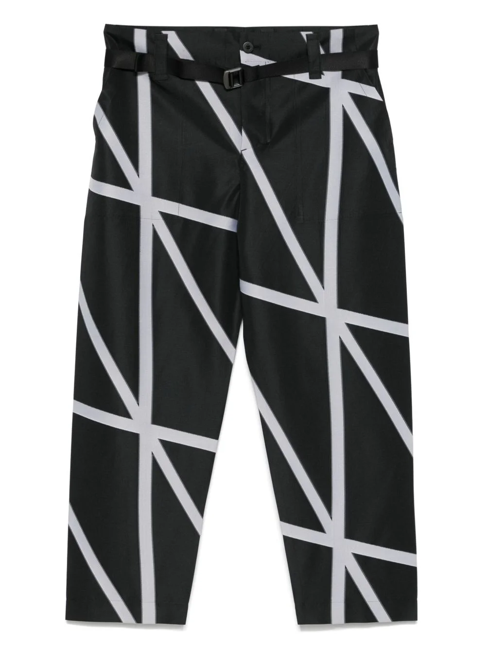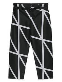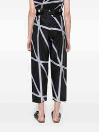 NO.5 jacquard trousers Highlights - Black - Patterned jacquard - Belted waist - Cropped leg Imported Composition Polyester 55%, Recycled Polyester 45% SIZE & FIT Model measurements Height 5 ft 10 in(1.79 m) Bust/Chest 35.43 in(90 cm) Hips 35.03 in(89 cm) Waist 25.19 in(64 cm) FittingInformation Designed for a tapered fit, these trousers allow for a close fit at the waist and a loose unrestricted fit over the leg with a closer fit towards the ankle The tie fastening gives an adaptable and personalised fit Made from a lightweight non-stretch fabric This piece's size conversion is based on body measurements; for help with this item's sizing, refer to our Size & Fit Guide