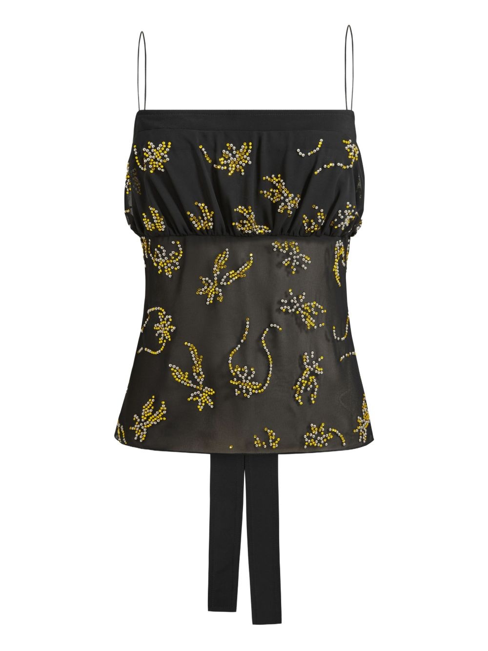 Amati top Highlights - Black - Rear tie fastening - Bead detailing - Square neck Imported Composition Outer: Polyester 100% Lining: Recycled Polyester 100% Washing instructions Read Manufacturer Guidelines