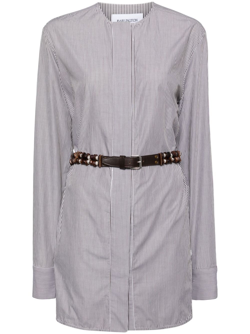 Edsel mini dress Highlights - White/multicolour - Cotton - Stripe print - Detachable waist belt - Long sleeves - Concealed front button fastening - Collarless neckline Made in United Kingdom Composition Cotton 100% SIZE & FIT Model measurements Height 5 ft 10 in(1.77 m) Bust/Chest 31.49 in(80 cm) Hips 35.43 in(90 cm) Waist 25.19 in(64 cm) FittingInformation Designed for a slim fit that sits just away from the body offering a close yet comfortable fit The belt offers adjustability for fitted preferences Made from a midweight non-stretch fabric