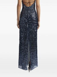 Eima gown dress Highlights - Steel blue - Sequin design - Concealed rear zip fastening - Halterneck - Plunging v-neck - Tie-fastening straps - Sleeveless - Low back - Rear slit - Long length Imported Composition Outer: Polyester 100% Lining: Polyester 100%