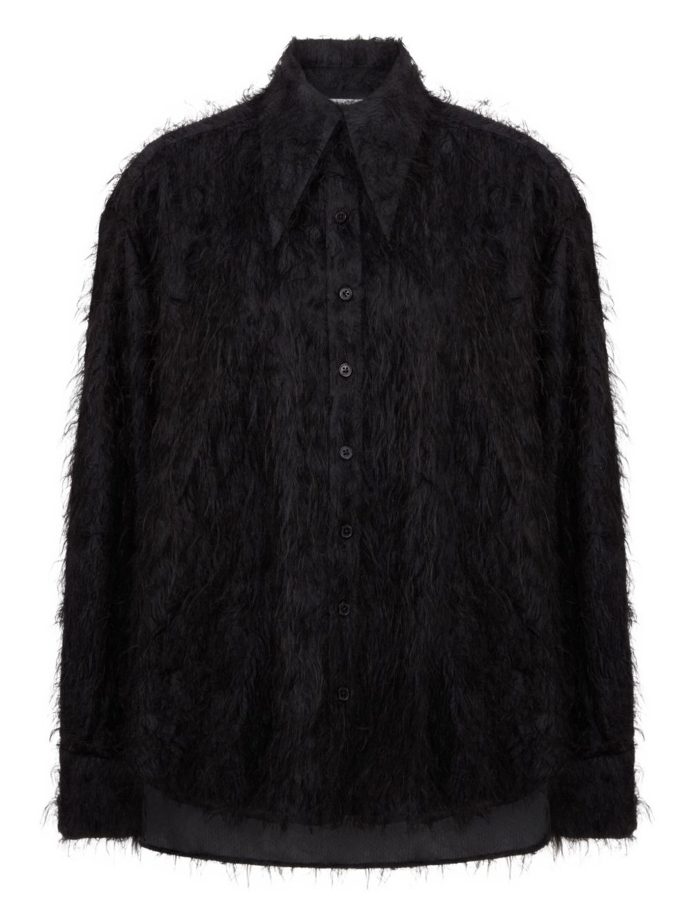 Elda fine-texture top Highlights - Black - Brushed finish - Classic collar - Long sleeves - Button fastening - Straight hem Imported Composition Ostrich Feather 100%, Acetate 58%, Viscose 42% Washing instructions Read Manufacturer Guidelines