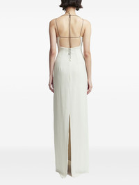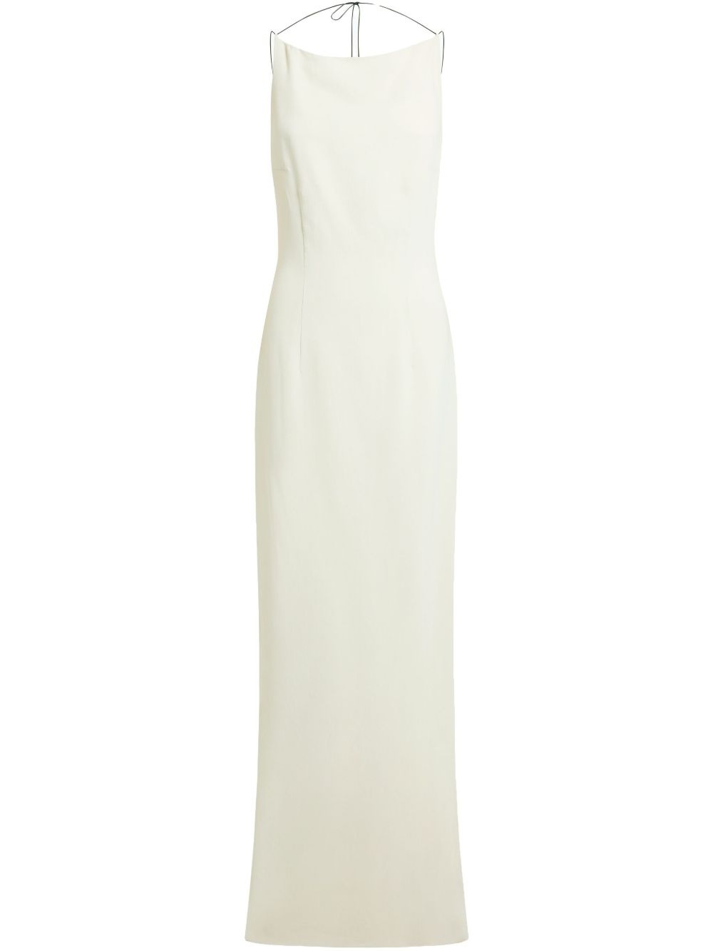 Hebe gown dress Highlights - Off-white - Crepe texture - Concealed rear zip fastening - Halterneck tie fastening - Thin shoulder straps - Open back - Rear slit - Long length Imported Composition Outer: Polyester 100% Lining: Polyester 100%