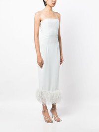 Minelli crepe midi dress Presented in muted sage green, the Minelli midi dress continues 16Arlington's penchant for exploring textures in its designs. Crafted from crepe, it is cut to a slim silhouette, while the tonal ostrich-feather hem elevates the garment. Highlights - Sage green - Ostrich feather - Crepe texture - Strapless - Concealed rear zip fastening - Rear slit - Feather-trim detailing - Mid-length Made in United Kingdom Composition Trims: Ostrich Feather 100% Lining: Polyester 100% Body: Polyester 100% SIZE & FIT Model measurements Height 5 ft 10 in(1.77 m) Bust/Chest 31.49 in(80 cm) Hips 35.43 in(90 cm) Waist 25.19 in(64 cm) FittingInformation Designed for a close fit throughout Made from a midweight non-stretch fabric This piece fits true to size – take your usual size