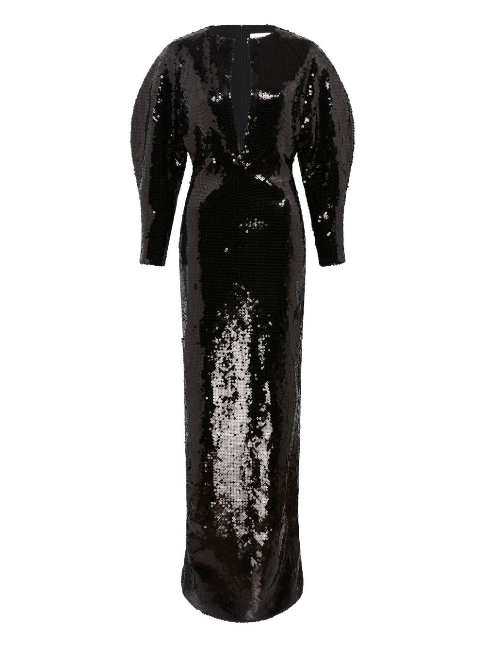 Mitilla sequinned gown Highlights - Black - Sequin embellishment - Puff sleeves - V-neck - Long sleeves - Fitted bodice Imported Composition Outer: Polyester 100% Lining: Recycled Polyester 100% Washing instructions Read Manufacturer Guidelines