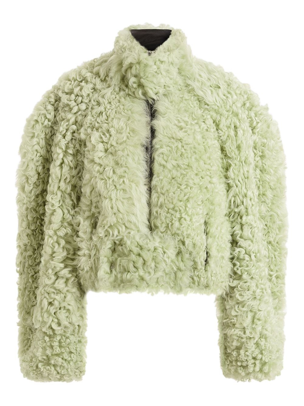 Nofre shearling jacket Highlights - Light green - Curly texture - Zip fastening - High neck - Long sleeves - Cropped length Made in United Kingdom Composition Lamb Shearling 100% Washing instructions Read Manufacturer Guidelines
