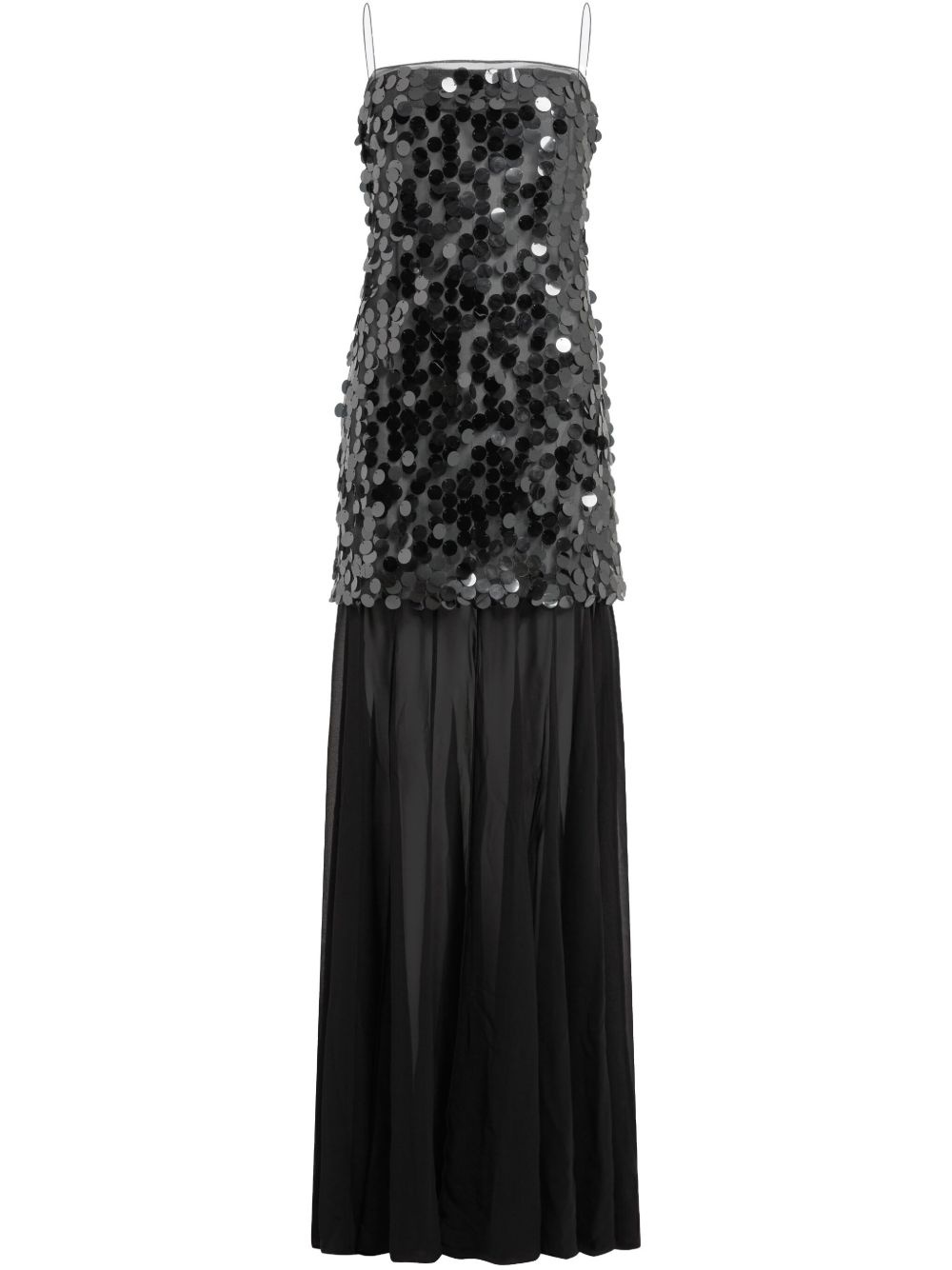 Salia gown Highlights - Black - Satin finish - Concealed rear zip fastening - Spaghetti straps - Square neck - Sleeveless - Sequin embellishment - Fitted waistline - Pleat detailing - Straight hem - Floor-length Imported Composition Outer: Polyester 100% Lining: Polyester 100% Washing instructions Read Manufacturer Guidelines