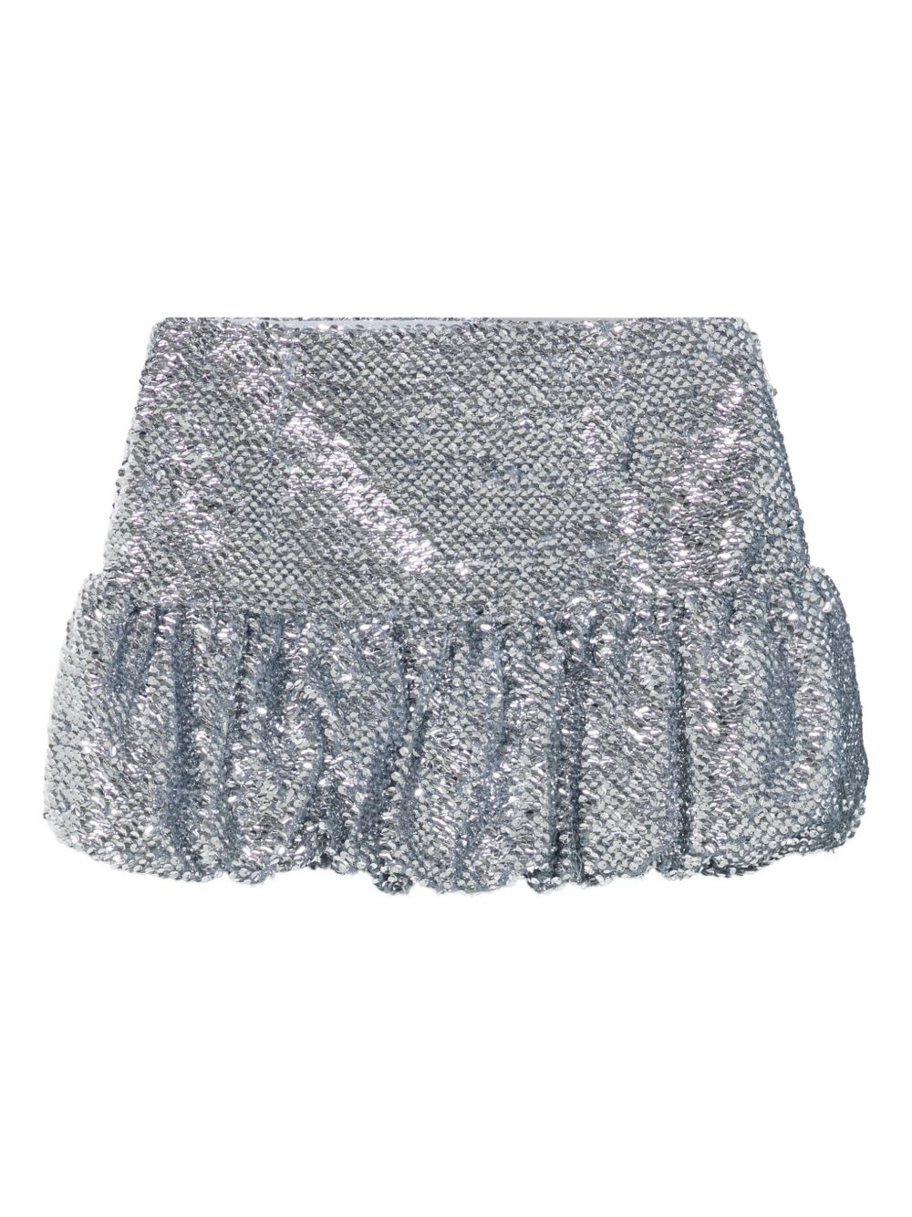 sequinned bubble-hem mini skirt Highlights - Silver-tone - Sequin embellishment - Bubble hem - Mini length - This piece features very delicate detailing. handle with extreme care to avoid damage such as broken feathers or loss of sequins. Imported Composition Sequin 100% Outer: Polyester 100% Lining: Recycled Polyester 100% SIZE & FIT Model measurements Height 5 ft 9 in(1.75 m) Bust/Chest 34.64 in(88 cm) Hips 36.61 in(93 cm) Waist 26.37 in(67 cm) Washing instructions Read Manufacturer Guidelines