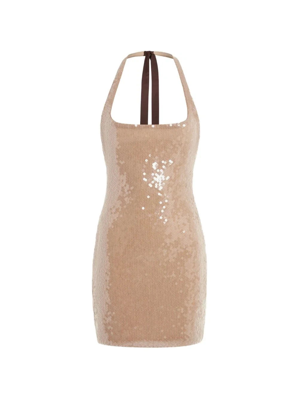 Syre sequin halterneck mini dress Highlights - Sand - Sequin embellishment - Halterneck - Tie fastening - Sleeveless - Mini length Made in United Kingdom Composition Outer: Polyester 100% Lining: Nylon 85%, Spandex/Elastane 15% Washing instructions Dry Clean Only