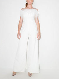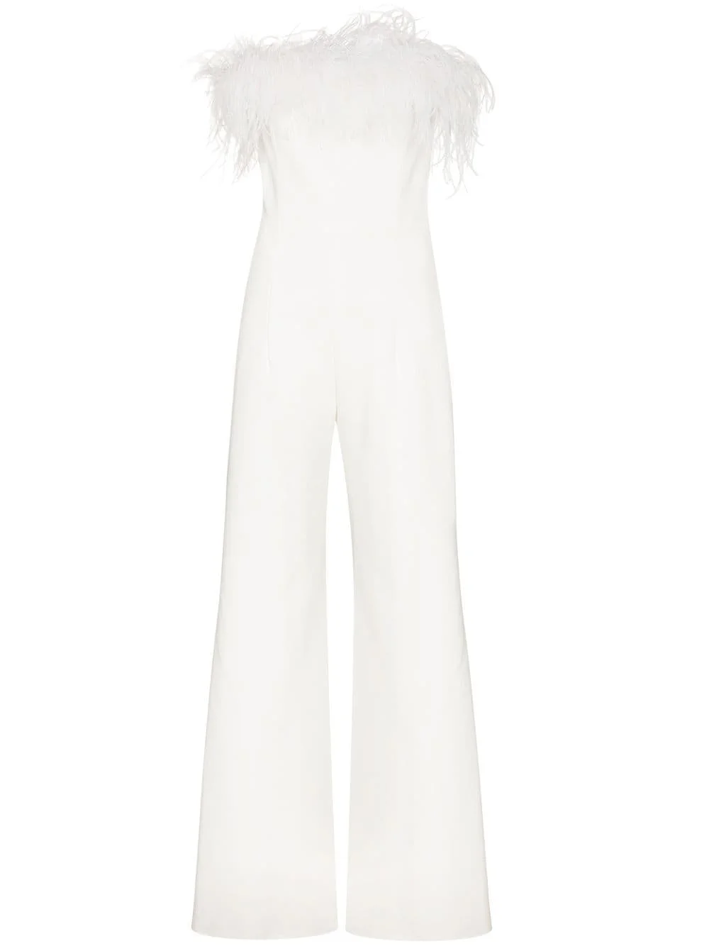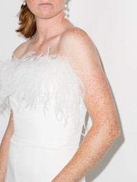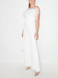 Taree feather-trim strapless jumpsuit 16Arlington is known for fluid silhouettes and feather-trimmed designs and this jumpsuit is no exception. With a striking strapless silhouette, it features a square-shaped bodice with the brand's signature feather detailing and falls to a wide leg. Made in United Kingdom Composition Ostrich Feather 100%, Polyester 100% SIZE & FIT Model measurements Height 5 ft 9 in(1.75 m) Bust/Chest 33.46 in(85 cm) Hips 36.61 in(93 cm) Waist 27.55 in(70 cm) FittingInformation This piece fits true to size. We recommend you get your regular size Designed for a close fit at the bust and waist, but loose at the hip Made with a mid-weight fabric Washing instructions Dry Clean Only