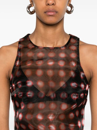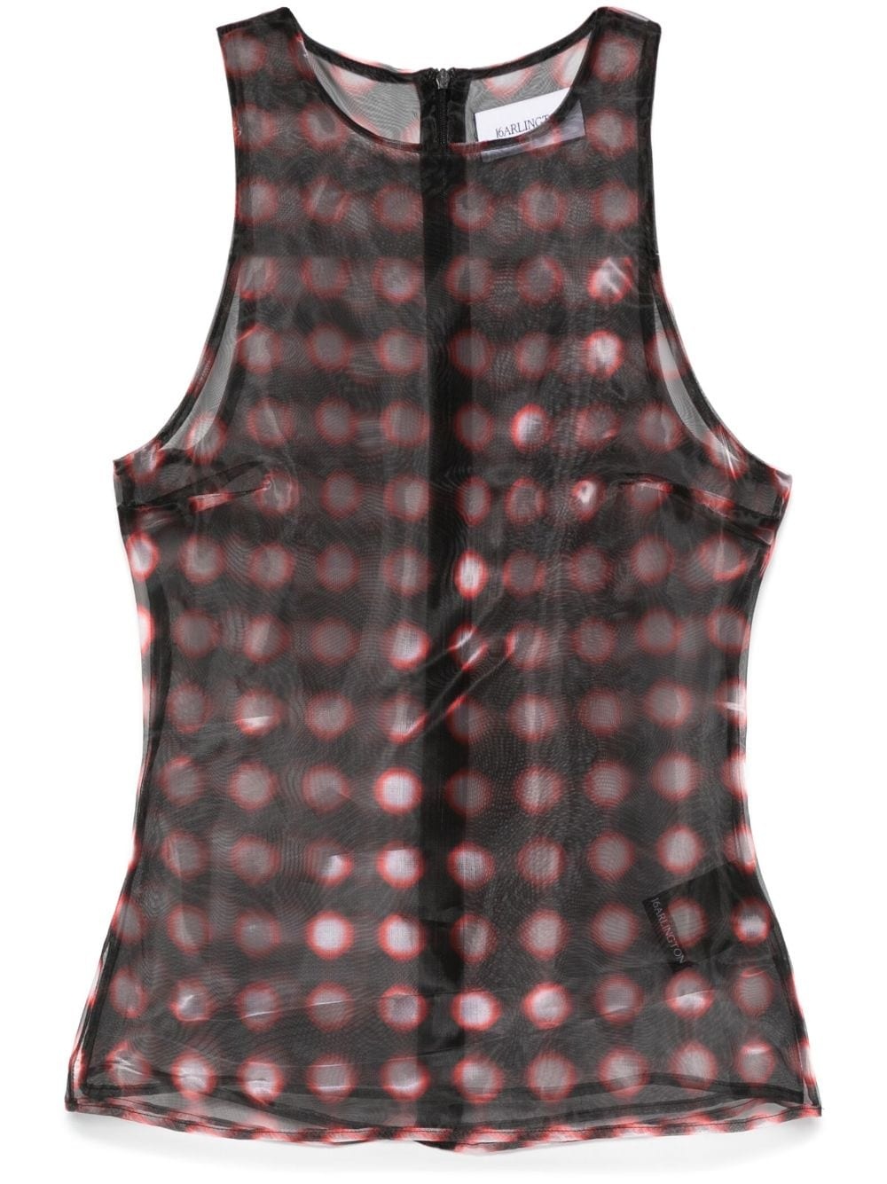 Tari tank top Highlights - Black/red/white - Organza - Concealed rear zip fastening - Semi-sheer construction - Geometric print - Round neck - Sleeveless - Straight hem Made in United Kingdom Composition Polyester 100% SIZE & FIT Model measurements Height 5 ft 10 in(1.77 m) Bust/Chest 33.07 in(84 cm) Hips 37 in(94 cm) Waist 24.8 in(63 cm) FittingInformation Designed for a slim fit that sits just away from the body offering a close yet comfortable fit Made from a lightweight non-stretch fabric