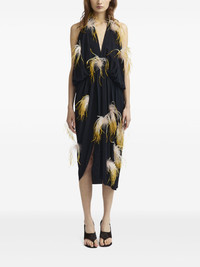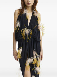 Vide midi dress Highlights - Black - Halterneck tie fastening - Sleeveless - Side slit - Feather detailing Imported Composition Outer: Polyester 100% Lining: Recycled Polyester 100% Washing instructions Read Manufacturer Guidelines