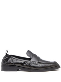 Alexa leather loafers black sheepskin pull-tab at the heel slip-on style penny slot almond toe branded insole flat rubber sole Imported Composition Lining: Leather 100% Sole: Leather 100% Outer: Sheepskin 100%