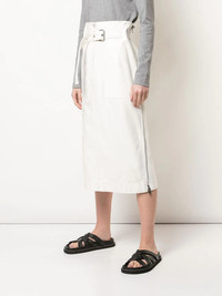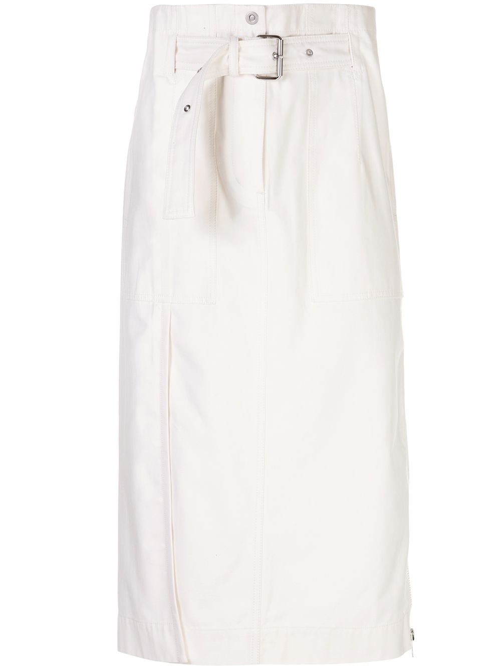 belted denim midi skirt Jane Eyre, Pride and Prejudice and some 3.1 Phillip Lim denim - you love a good classic. This belted midi skirt is best-seller material. Get your copy and join the book club! Featuring a belted waist, a mid-calf length, a side slit, a paperbag waist, a side zip fastening and side slit pockets. Imported Composition Cotton 100% SIZE & FIT Model measurements Height 5 ft 10 in(1.79 m) Bust/Chest 31.1 in(79 cm) Hips 33.85 in(86 cm) Waist 22.83 in(58 cm) Washing instructions Dry Clean Only