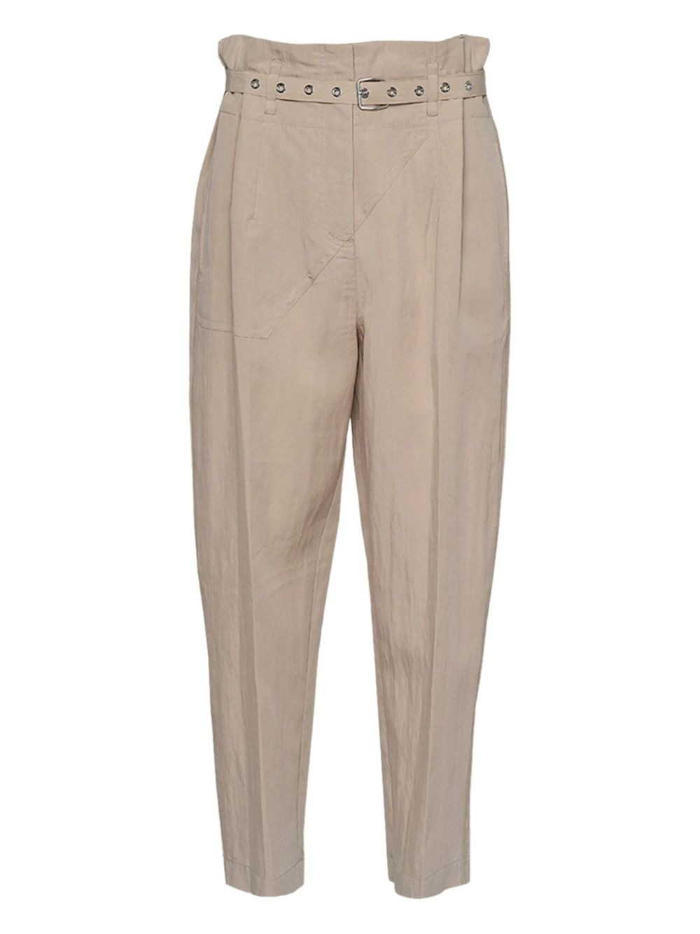 belted pleat-detail tapered trousers Highlights - Beige - Belt loops - Eyelet-embellished belt - Pleat detailing - Pressed crease - Side slit pockets - Rear patch pocket - Paperbag waist - Concealed zip and hook fastening - Tapered leg Imported Composition Body: TENCEL™ 91%, Nylon 9% Washing instructions Specialist Cleaning