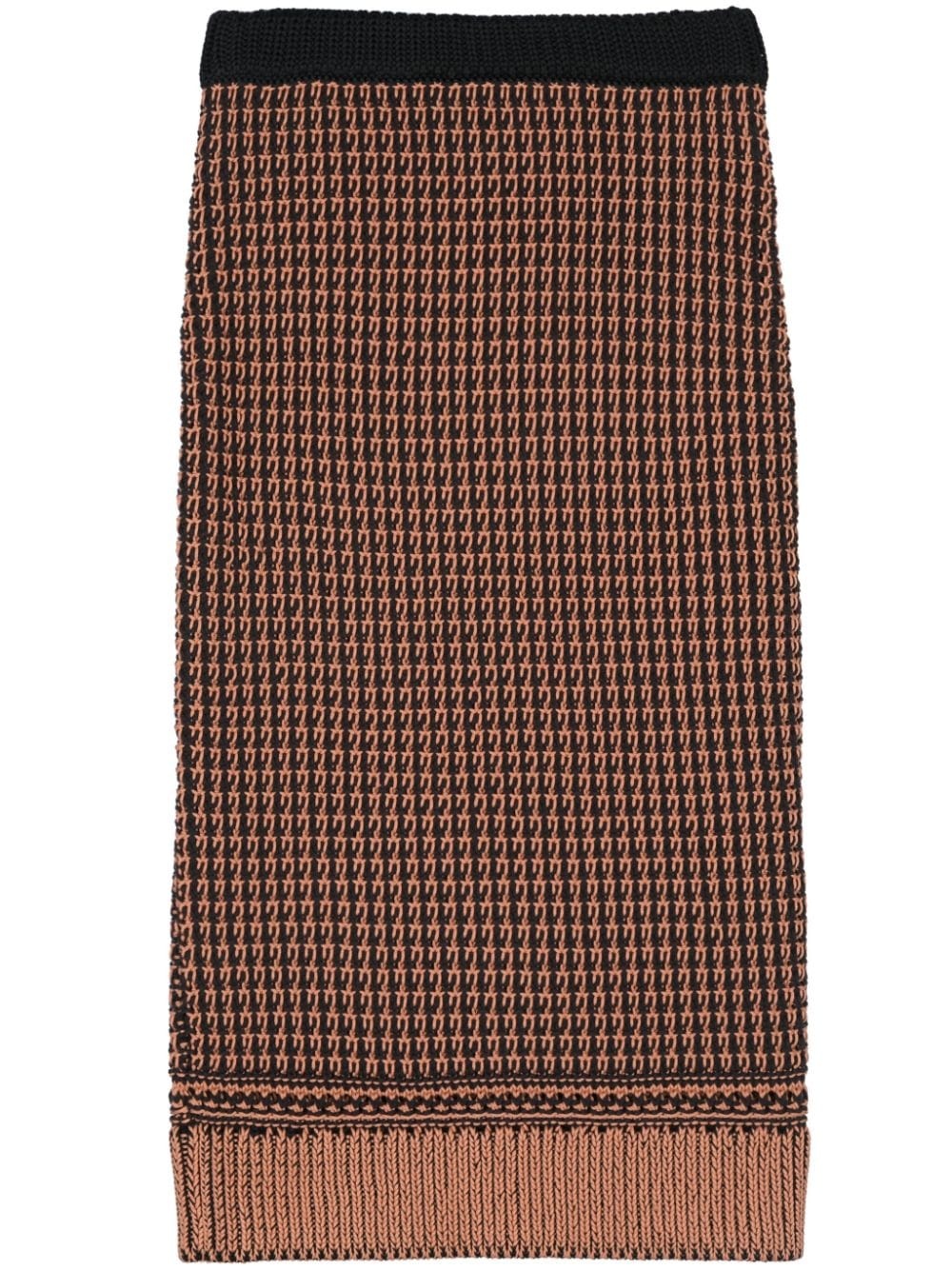 bi-color knitted skirt Highlights - Black/light orange - Knitted construction - Crochet knit - Ribbed trim - Elasticated waistband - Unlined - Straight hem Imported Composition Body: Cotton 60%, Polyester 40% Washing instructions Specialist Cleaning