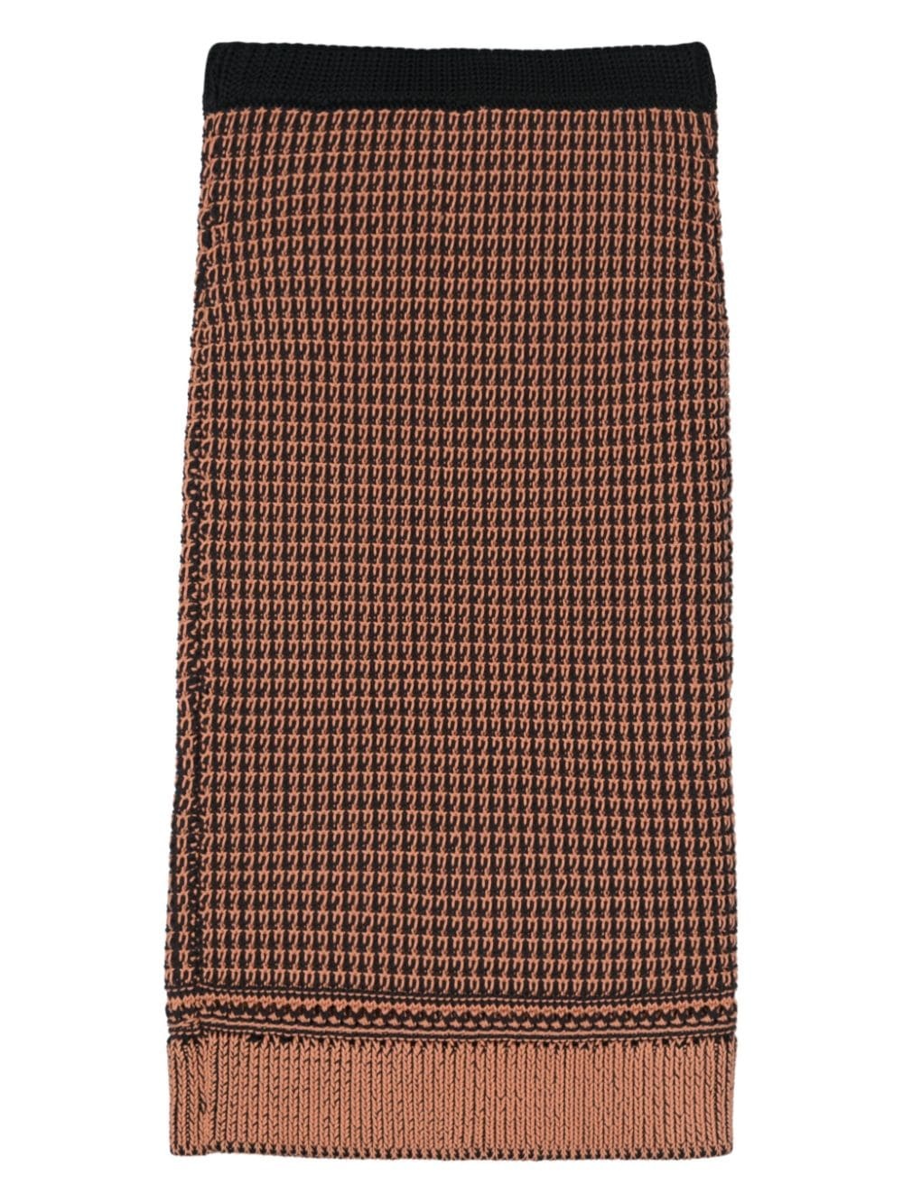 bi-color knitted skirt Highlights - Black/light orange - Knitted construction - Crochet knit - Ribbed trim - Elasticated waistband - Unlined - Straight hem Imported Composition Body: Cotton 60%, Polyester 40%