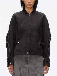 bomber jacket Highlights - Black - Front press-stud fastening - Two press-stud fastening side pockets - Long sleeves Imported Composition Cotton 55%, Viscose 45% SIZE & FIT FittingInformation Designed to be unstructured, offering a loose fit throughout Made from a midweight non-stretch fabric