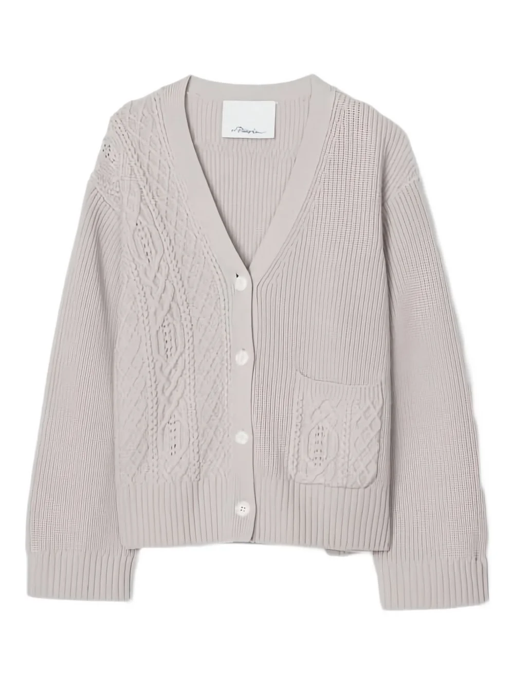 cable-knit pocket cardigan Highlights - Light grey - V-neck - Button fastening - Front pocket - Ribbed knit - Cable knit Imported Composition Wool 100% Washing instructions Specialist Cleaning