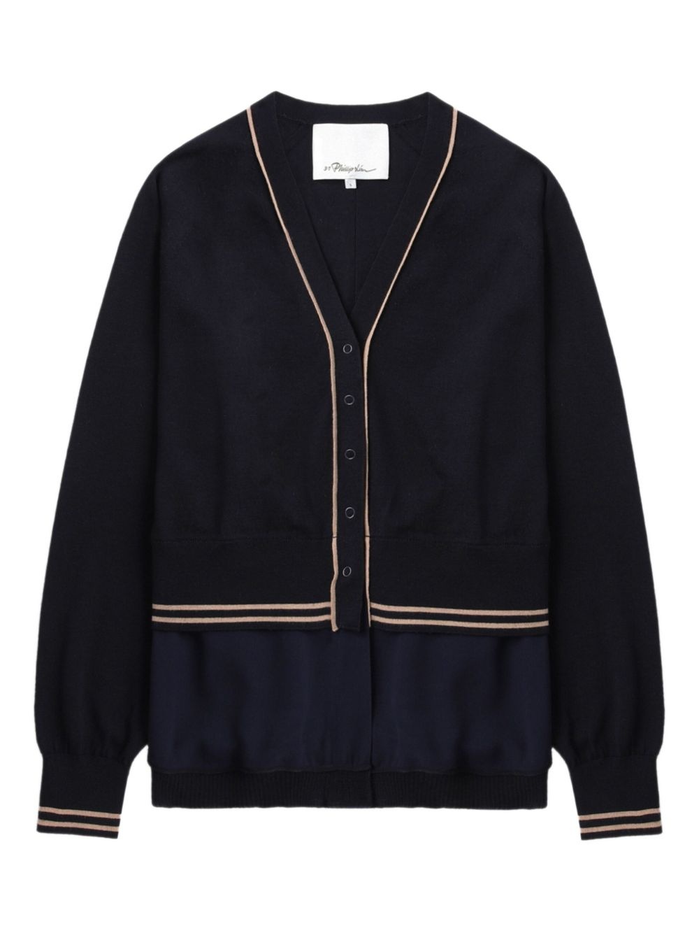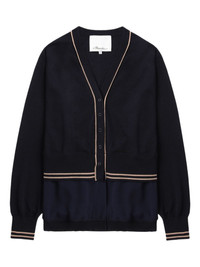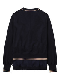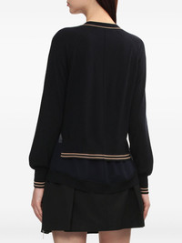 chiffon-hem V-neck wool cardigan Highlights - Navy blue - V-neck - Button fastening - Wool - Contrasting trim - Layered hem Imported Composition Wool 100% Washing instructions Read Manufacturer Guidelines