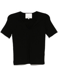 compact rib tee Highlights - Black - Ribbed knit - V-neck - Short sleeves Imported Composition Viscose 63%, Nylon 20%, Polyester 15%, Elastane 2%