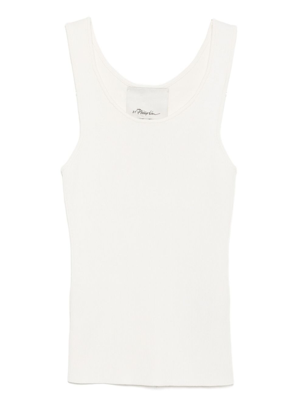 compact ribbed tank top Highlights - White - Scoop neck - Sleeveless Imported Composition Viscose 73%, Polyester 15%, Nylon 11%, Elastane 1% SIZE & FIT FittingInformation Designed for a slim fit that sits just away from the body offering a close yet comfortable fit Made with a midweight knit, this piece offers some stretch Washing instructions Dry Clean Only