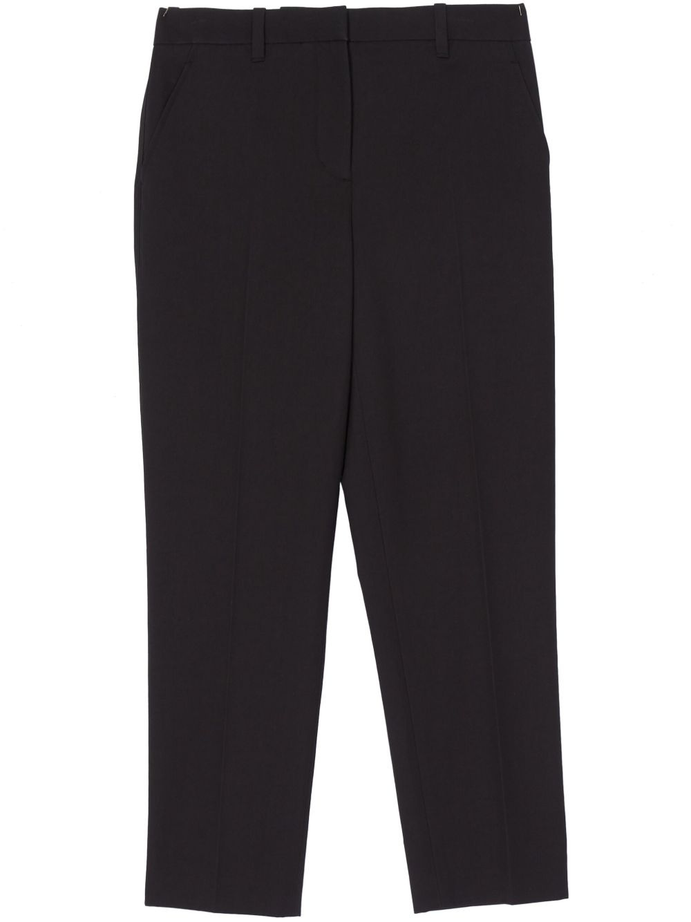 cropped trousers Highlights - Black - Concealed front fastening - Two side slash pockets - Rear button-fastening jetted pocket - Belt loops Imported Composition Cotton 55%, Viscose 45%