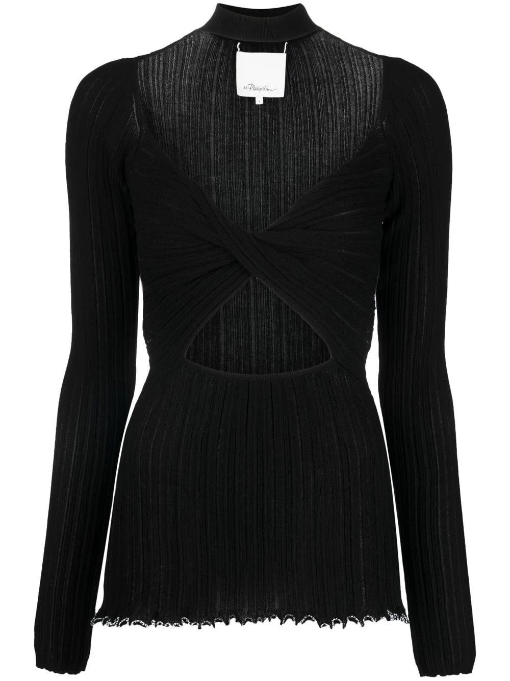 cut-out knitted top 3.1 Phillip Lim reimagines knitwear for AW22 with this ribbed knit top. This design is enhanced by a cut-out construction and knot detailing, exhibiting a modern design. Imported Composition Cotton 76%, Nylon 23%, Spandex/Elastane 1% SIZE & FIT Measurement SLEEVE LENGTH 26.77 in(68 cm) Shoulder Width 9.84 in(25 cm) LENGTH 24.4 in(62 cm) BUST 25.19 in(64 cm)