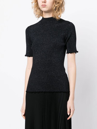 cut-out ribbed knit top 3.1 Phillip Lim's collections exude elegance with minimal effort. Case in point: this knitted top from the brand's SS23. Presented in a classic black hue, this piece is constructed with subtle metallic threading and a lettuce hem, while the cut-out detailing at the back serves to liven up the timeless silhouette. Imported Composition Body: Viscose 60%, Polyester 25%, Metallic Fibre 10%, Nylon 5% SIZE & FIT Model measurements Height 5 ft 9 in(1.76 m) Bust/Chest 29.92 in(76 cm) Hips 35.82 in(91 cm) Waist 25.98 in(66 cm) FittingInformation This piece fits true to size. We recommend you get your regular size Cut for a slim fit Made with a mid-weight fabric Washing instructions Dry Clean Only