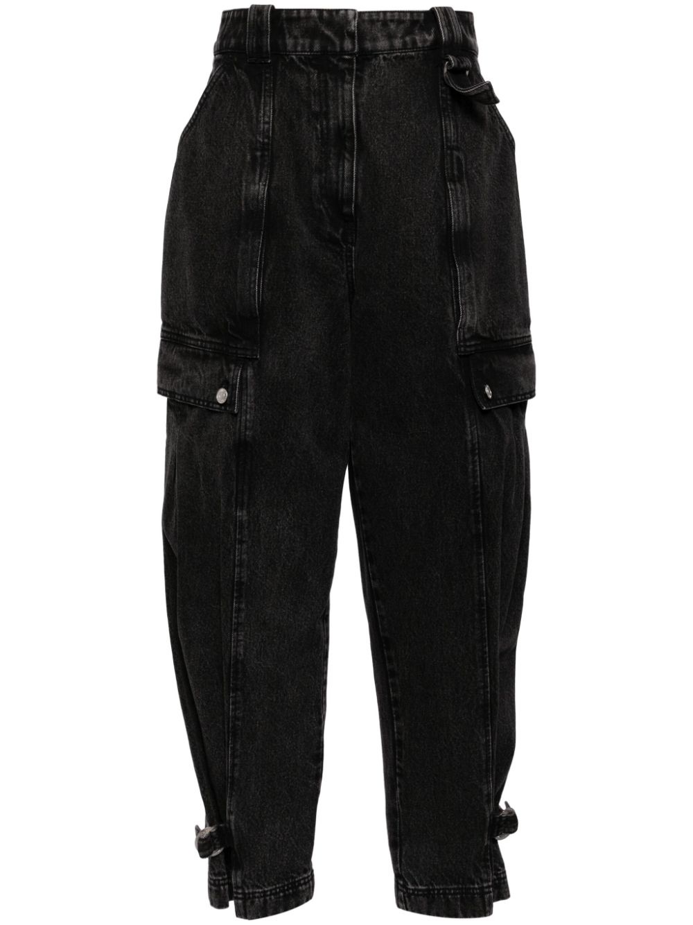 denim cargo jeans Highlights - Black - Cotton - Denim - Hook and zip fly fastening - Side cargo pocket - Tapered leg Imported Composition Body: Cotton 100%