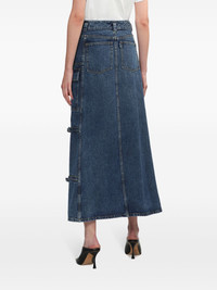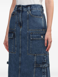 denim cargo midi skirt Highlights - Blue - Cotton - Denim - Front button and zip fastening - Belt loops - Classic five pockets - Two side flap pockets - Adjustable side straps - Mid-length Imported Composition Cotton 100%