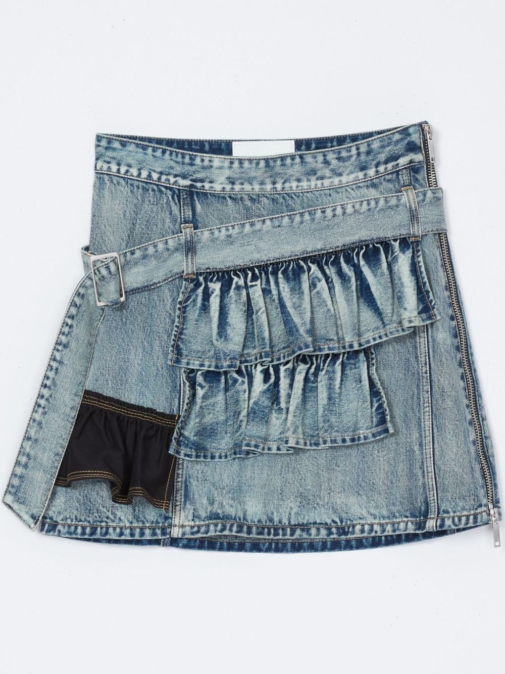 denim mini skirt Highlights - Blue - Side zip fastening - Ruffle hem - Thigh-length Imported Composition Cotton 100%