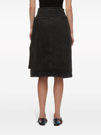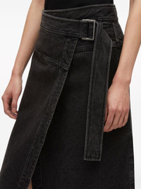 denim wrap skirt Highlights - Black - Cotton - Denim - Wrap design - Asymmetric design - High-waisted - Belted waist - Knee-length Imported Composition Cotton 100% Washing instructions Dry Clean Only