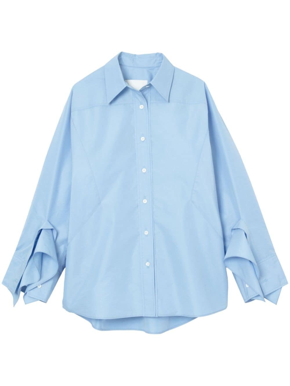 draped-cuff poplin shirt Highlights - Oxford blue - Cotton blend - Poplin texture - Classic collar - Front button fastening - Long draped sleeves - Straight hem Imported Composition Cotton 70%, Polyester 30% Washing instructions Dry Clean Only
