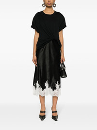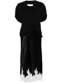 draped T-shirt slip combo dress Highlights - Black/white - Cotton - Panelled design - Crew neck - Short sleeves - Lace detailing - Calf-length - Scallop hem Imported Composition Cotton 100%, Acetate 100%, Polyester 100%, Nylon 100% SIZE & FIT Model measurements Height 5 ft 10 in(1.78 m) Bust/Chest 32.67 in(83 cm) Hips 35.43 in(90 cm) Waist 23.22 in(59 cm) Measurement LENGTH 44.88 in(114 cm) WAIST 34.64 in(88 cm) BUST 40.94 in(104 cm) Shoulder Width 18.11 in(46 cm) FittingInformation Designed for a slim fit that sits just away from the body offering a close yet comfortable fit Made from a midweight non-stretch fabric, this piece offers minimal elasticity when worn This piece fits true to size – take your usual size Washing instructions Dry Clean Only