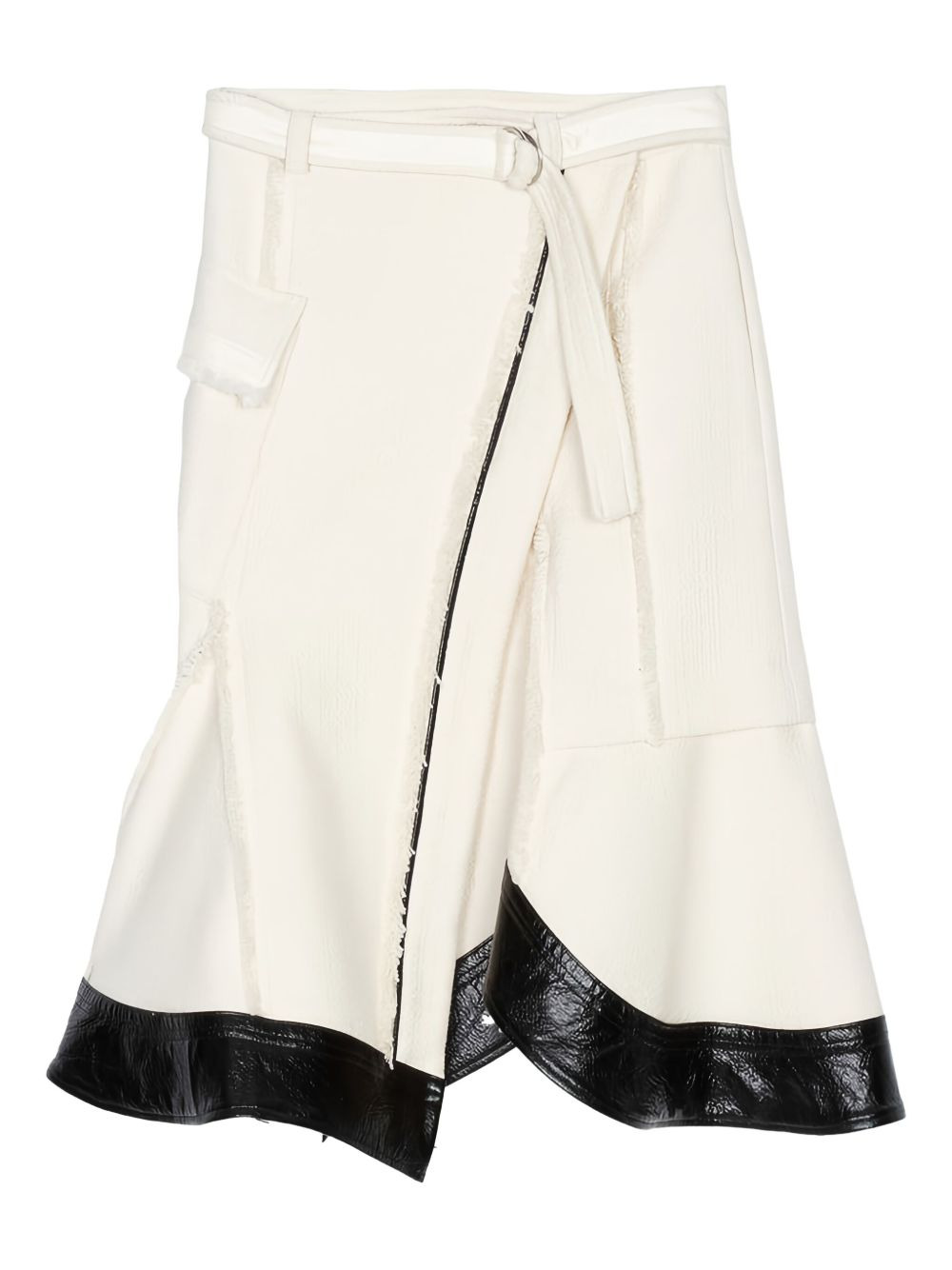 faux-leather panel tweed skirt Highlights - Off-white - Tweed texture - Faux-leather panel - Asymmetrical hem - Belted waist - Zip fastening Imported Composition Cotton 100% Washing instructions Dry Clean Only