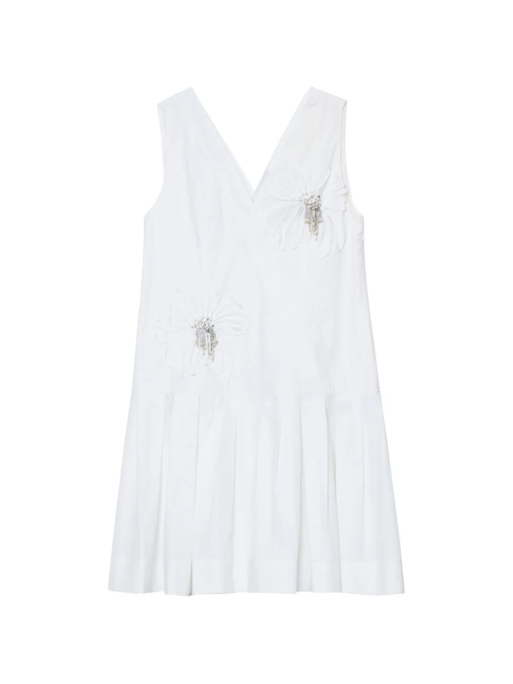 floral applique V-neck mini dress Highlights - White - Floral applique - V-neck - Pleat detail Imported Composition Cotton 100% Washing instructions Specialist Cleaning