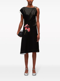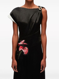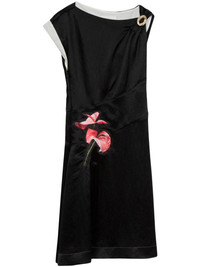 floral-motif draped twisted dress Highlights - Black/multicolour - Satin finish - Draped design - Floral motif - Asymmetric neck - Twist detailing - Gold-tone hardware - Asymmetric hem - Below-knee length Imported Composition Acetate 100% Washing instructions Specialist Cleaning